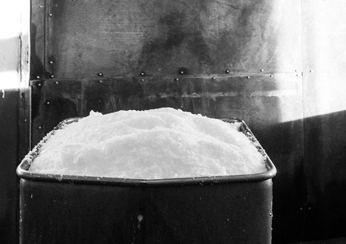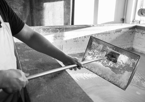 We pump the sea-water to open pans where we pre-heat it until it becomes a strong brine, a salinity level of 17-20%. Then we boil the brine until white crystals appear on the surface and slowly fall to the bottom of the pan. Therafter we draw the pan and drain any remaining liquid. Then it is dried and put into packaging.